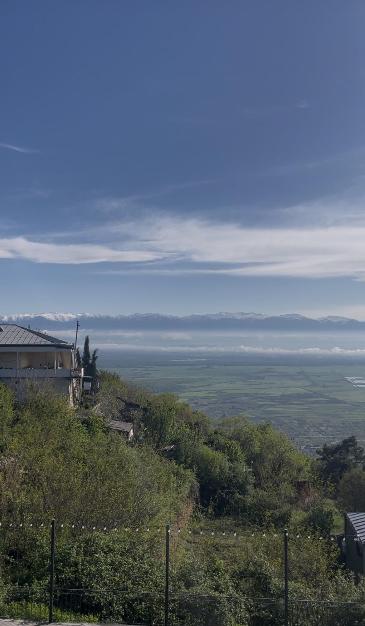 But the greatest joy was to come at the end of yesterday. I’d finished my last of ten climbs for the day (in itself a happy thing), when in a split second the levelling tarmac revealed the most stunning view I think I’ve ever seen so unexpectedly in my life. No photograph will do justice to the feeling that rushed through me in that moment as the vast expanse of the Alazani Valley appeared to roll out a carpet to the splendour of the vast, snow-encrusted Caucasus Mountains.