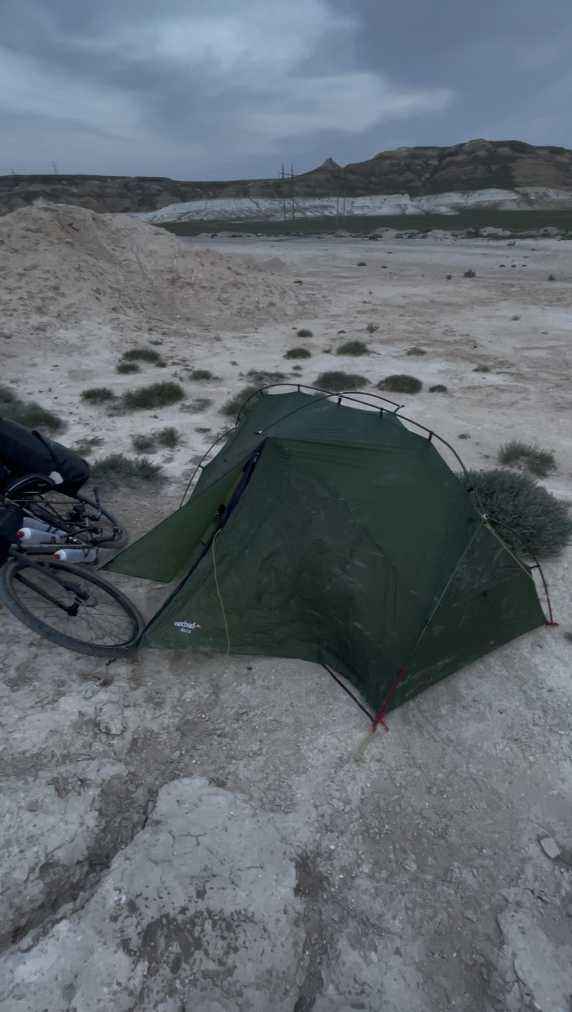 It took me almost ten hours to ride just 55 miles, and by the time I unclipped from the pedals (on reasoning that I’d found the best spot I could for my first night wild camping) I was exhausted. I’d got through most of my electrolyte-enriched water supplies along the way (a temperature of 32c barely noticeable given the extremity of the wind, but no doubt drawing vast amounts of moisture from my skin surreptitiously throughout the day!), and I was incredibly grateful to the family who thought nothing of giving me their water to top me up when I asked for their help.