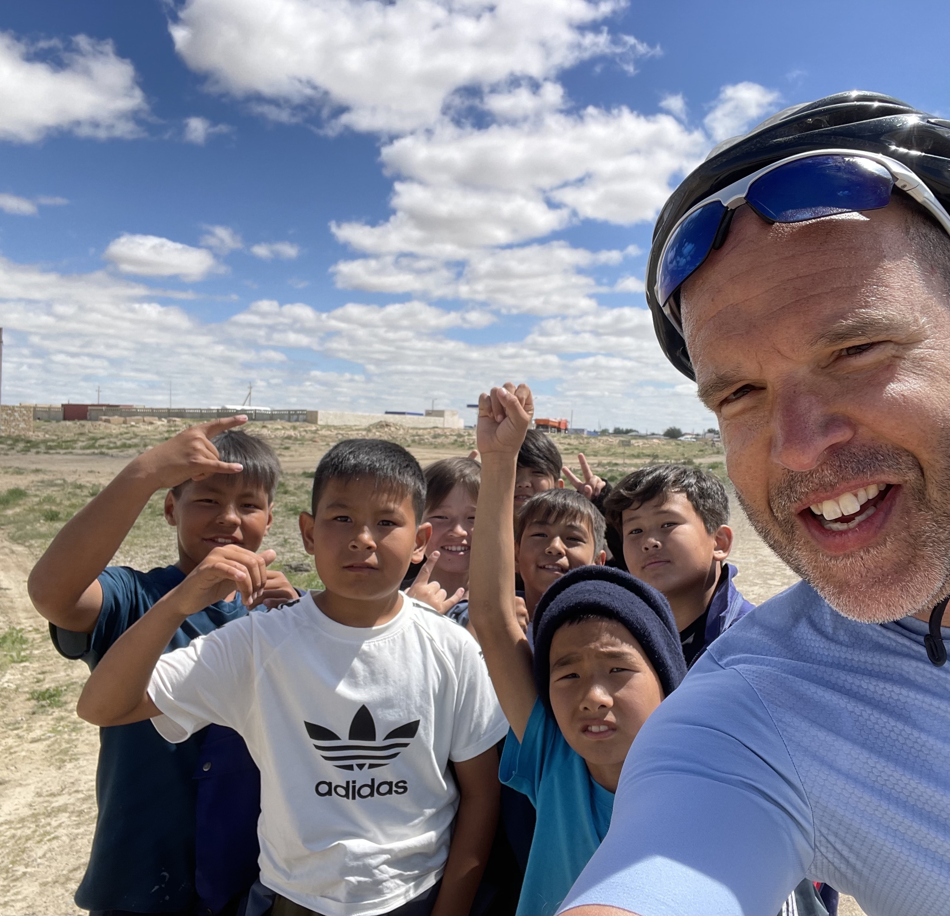 There was little drama for the rest of the day, but a moment of serendipity when an enforced stop to retrieve my water bladder (which was thankfully undamaged despite breaking free from its mooring on the bike and crashing to the road) bought some time for a group of boys (aged about 12) from the local village school to make their way to me across the sand. Mansur was the first to introduce himself, and the boys were a delight. So engaged and respectful. Their smiles and enthusiasm gave me as much fuel as any food could have done in that moment.